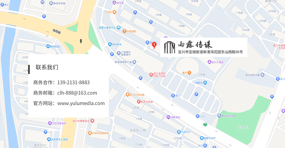 公司地址: 雨露傳媒地址:宜興市宜城街道新港灣花園東山西路96號(hào) | ![]() |