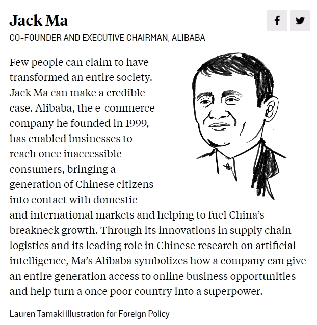 名稱【雨露傳媒】馬云入選全球“10大思想者”:他真正改變了一個(gè)社會(huì) 2019-01-21 15:43:50